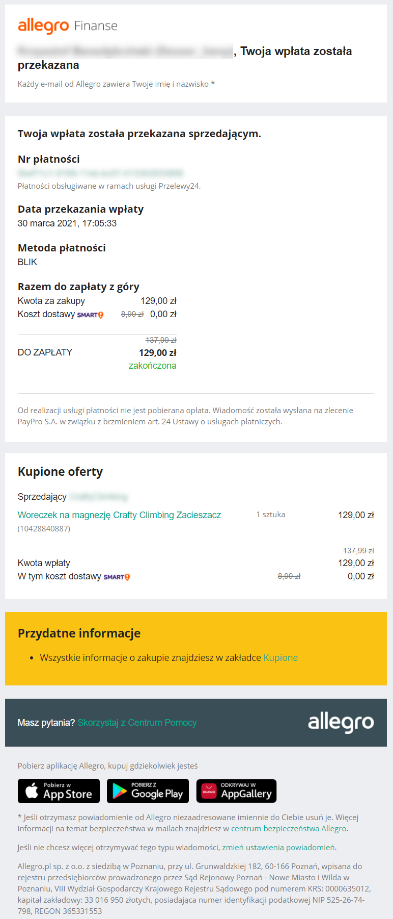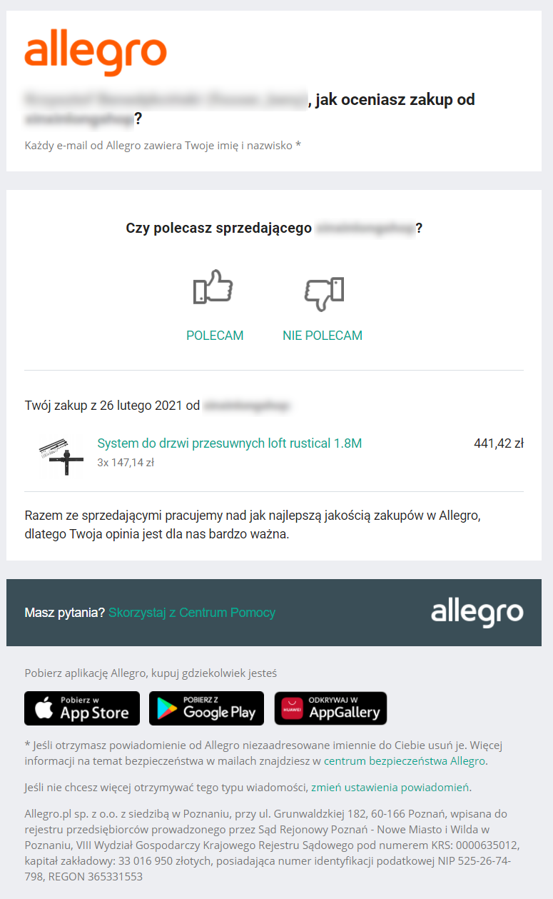 Sending multiple notifications with similar content makes them less effective. That is why we prepare the post-purchase notifications on Allegro in a way that buyers: