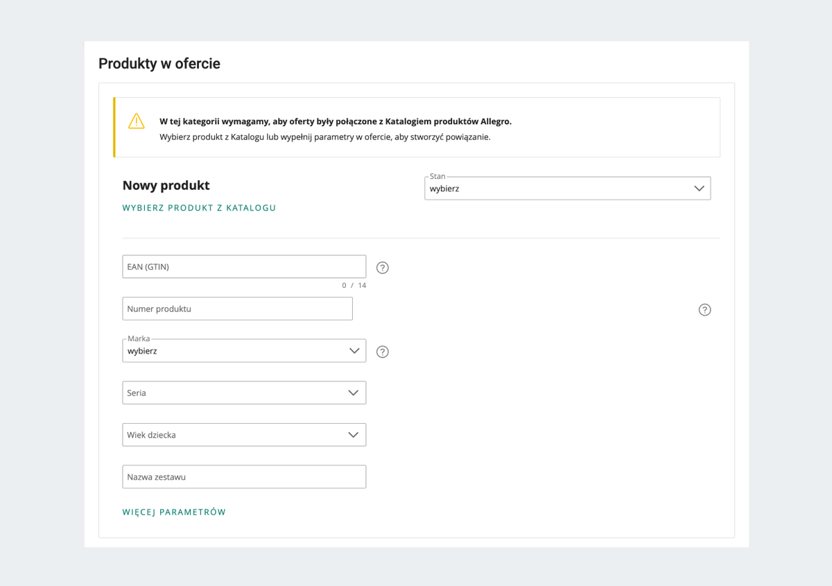 Gdy dodajesz produkt do Katalogu, współtworzysz go i masz wpływ na jakość danych, które wyświetlamy kupującym. Dlatego uzupełnij poprawnie dane produktu w formularzu wystawiania.